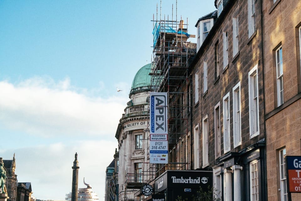 This commercial scaffolding project within the city centre of Edinburgh required approximately 250m2 of scaffold to be erected to the front elevation of the building. The scaffold was to allow our partners Apex Roofing Contracts to carry out a full roof overhaul.
